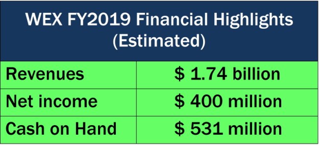 So what do we know about WEX? Well, the company started in 1983 in Portland as a pioneer in the fleet (i.e., trucking) credit card business and has been astonishingly successful since then. It is now “a global leader in financial technology solutions.” It is Maine’s third largest publicly held company (based on revenues) with an enviable financial track record. Here are some of WEX’s recent financial highlights: