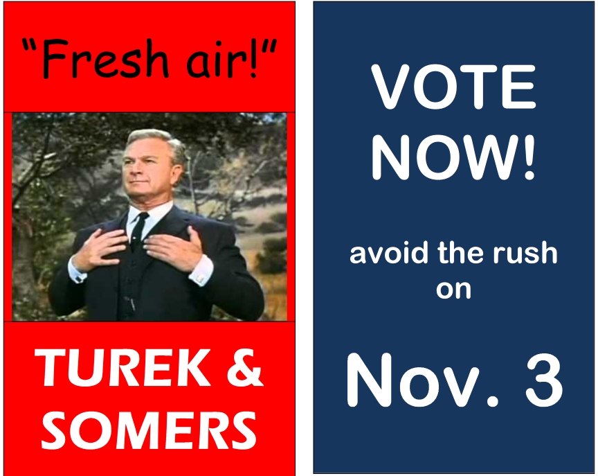Suggested treatment: vote for both Liam Somers and Mike Turek, preferably by this Thursday, October 29, but no later than Tuesday, November 3. Without both of these guys on the Town Council, blank-check-itis will become an epidemic.