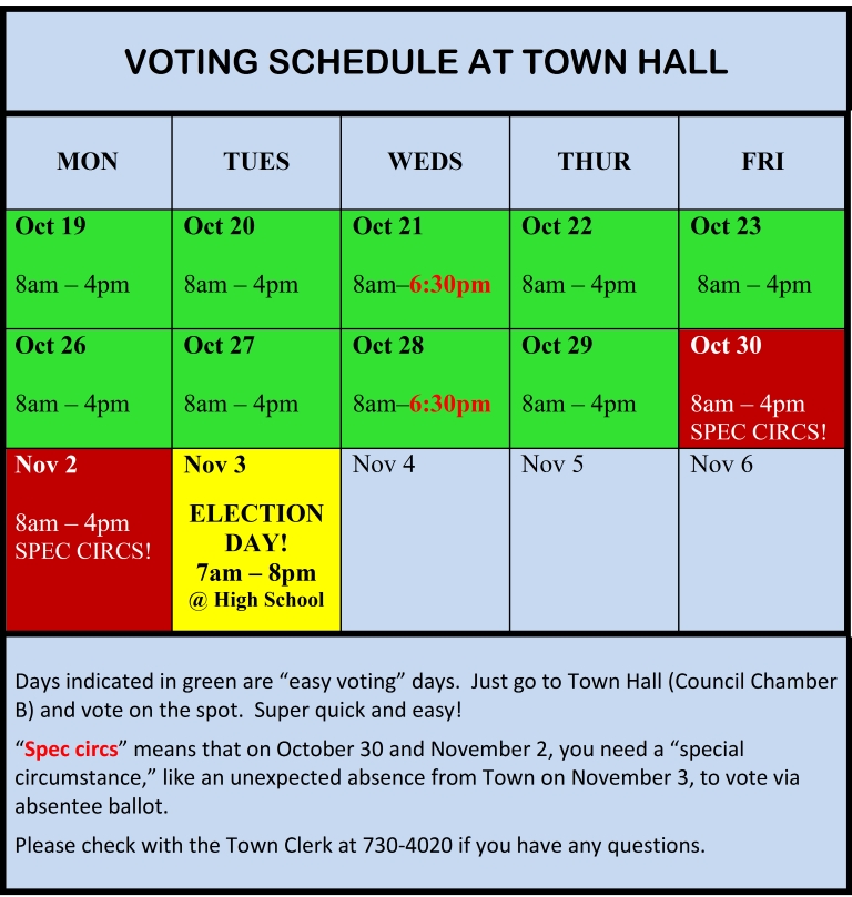 And one final reminder, early voting is quick and easy… but only available this Wednesday (until 6:30pm) and Thursday, October 28 & 29.